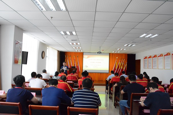 2019年7月25日下午,鄭州萬達重工股份有限公司黨總支在綜合行政樓二樓黨員活動室開展了2019年7月份“不忘初心、牢記使命”主題黨日活動。黨總支全體黨員、入黨積極分子、入黨申請人共計40余人參加了此次活動?;顒佑牲h總支副書記于江山主持。