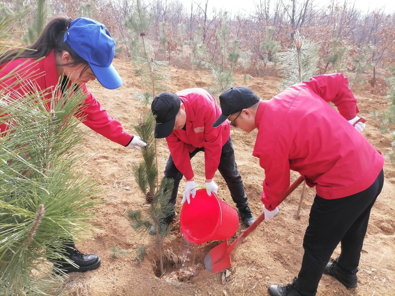 一桶清水,灌溉希望,一棵樹苗,承載未來。植樹現(xiàn)場黨旗、司旗、黨小組旗、團旗在風(fēng)中迎風(fēng)飄揚,植樹活動中,大家熱情高漲、干勁十足,全體參加人員發(fā)揚不怕苦、不怕臟、不怕累的精神,分工協(xié)作、揮鍬鏟土、扶樹填坑、踏土夯苗、提水澆灌,有條不紊地完成植樹各個環(huán)節(jié)。經(jīng)過大家一上午的共同努力,一株株新栽種的樹苗迎風(fēng)挺立,為大地增添了勃勃生機。