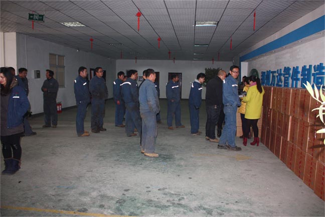 2015年2月4日下午13:00,公司組織的年終福利品發(fā)放工作在行政大廳熱鬧進(jìn)行。