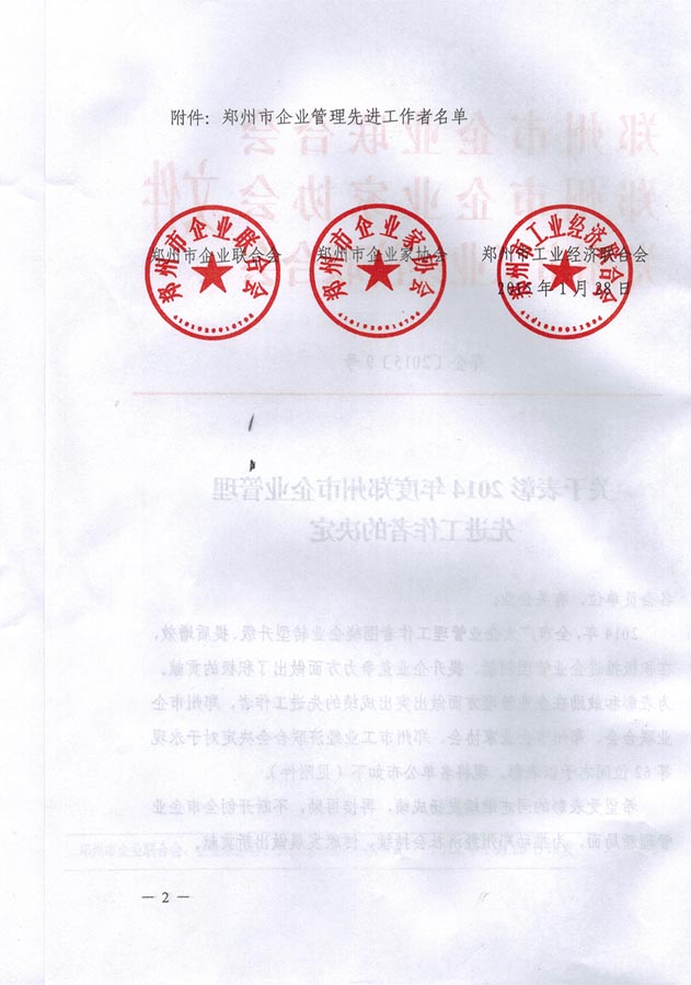 熱烈祝賀我公司白楊同志獲得鄭州市企業(yè)管理先進(jìn)工作者稱號(hào)