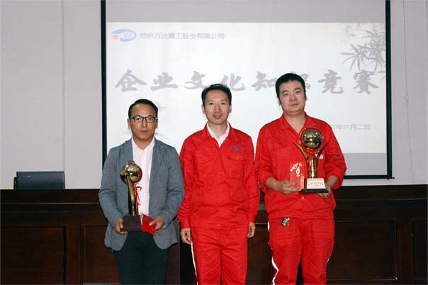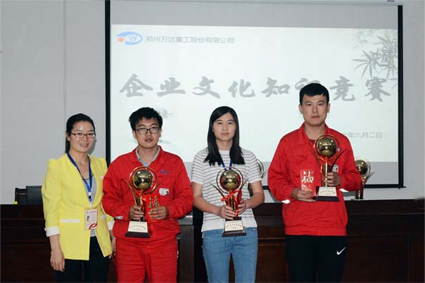 本次企業(yè)文化知識競賽共持續(xù)三個半小時,由控股公司友聯(lián)智能、子公司萬達科技、萬達邁克及總公司萬達重工的14個部門共同組成的15支代表隊伍共66人參加了比賽。比賽評委由公司董事長、書記何清、工會主席于江山、總工袁希海、人力資源部經(jīng)理趙書麗擔(dān)任,過程精彩、激烈,觀眾熱情高漲,各選手互相配合,團結(jié)協(xié)作。最終在“公開,公正,公平”的原則下,經(jīng)過初露鋒芒、心有靈犀、當(dāng)機立斷、精誠合作四輪的角逐產(chǎn)生優(yōu)勝獎團隊:行政管理部代表隊榮獲一等獎,萬達邁科、生產(chǎn)管理部一隊獲得二等獎,物流服務(wù)中心、知識體系二期聯(lián)合部及質(zhì)量管理部榮獲三等獎。