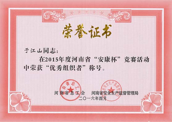 8月16日,河南省總工會與河南省安全生產(chǎn)監(jiān)督管理局對2015年度“安康杯”競賽先進(jìn)集體和個(gè)人進(jìn)行通報(bào)表彰,鄭州萬達(dá)重工股份有限公司繼2014年度獲得河南省“安康杯”后,再次榮獲2015年度省級“安康杯”競賽先進(jìn)單位稱號,股份公司工會主席于江山榮獲河南省“安康杯”競賽活動“優(yōu)秀組織者”榮譽(yù)稱號。