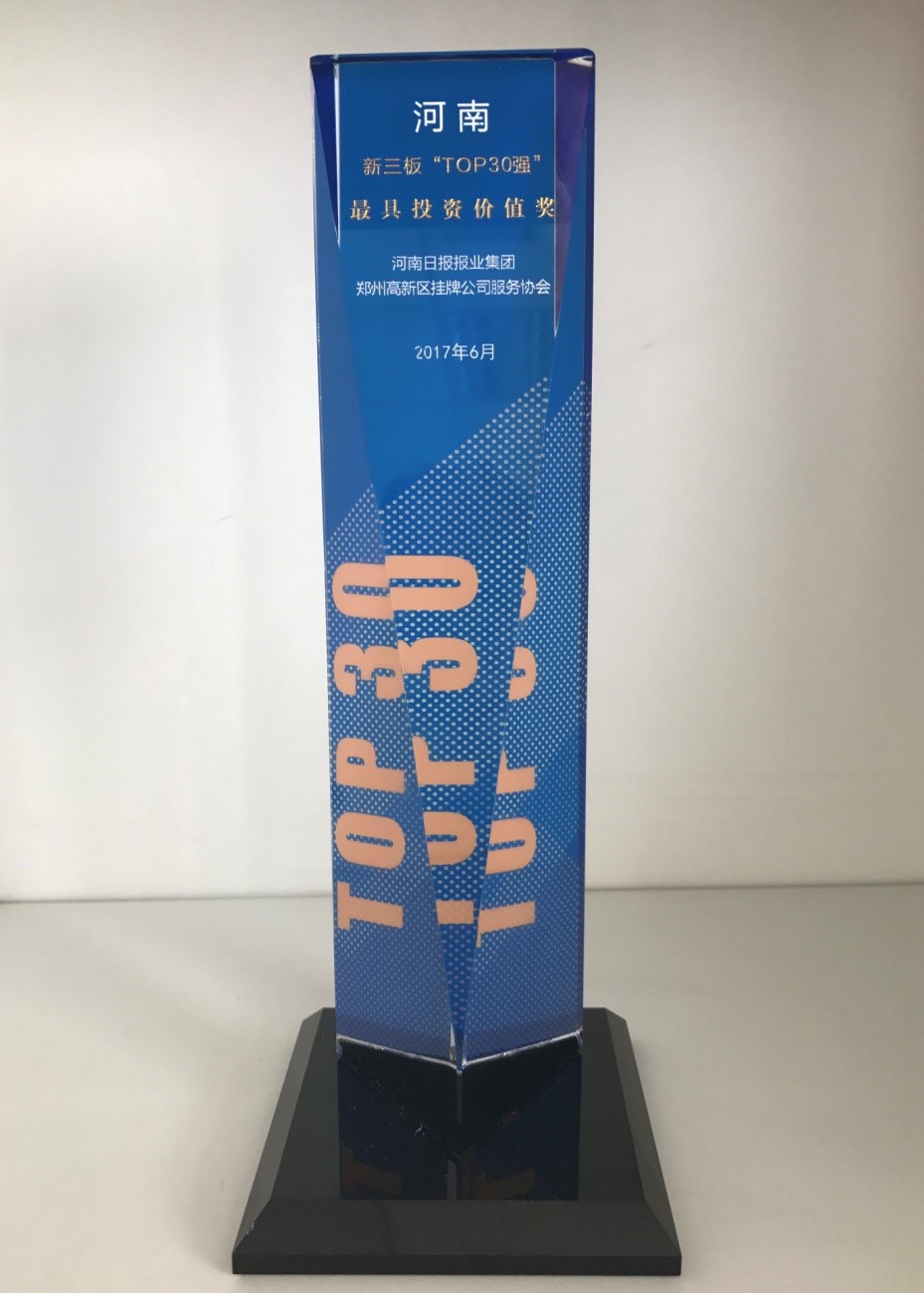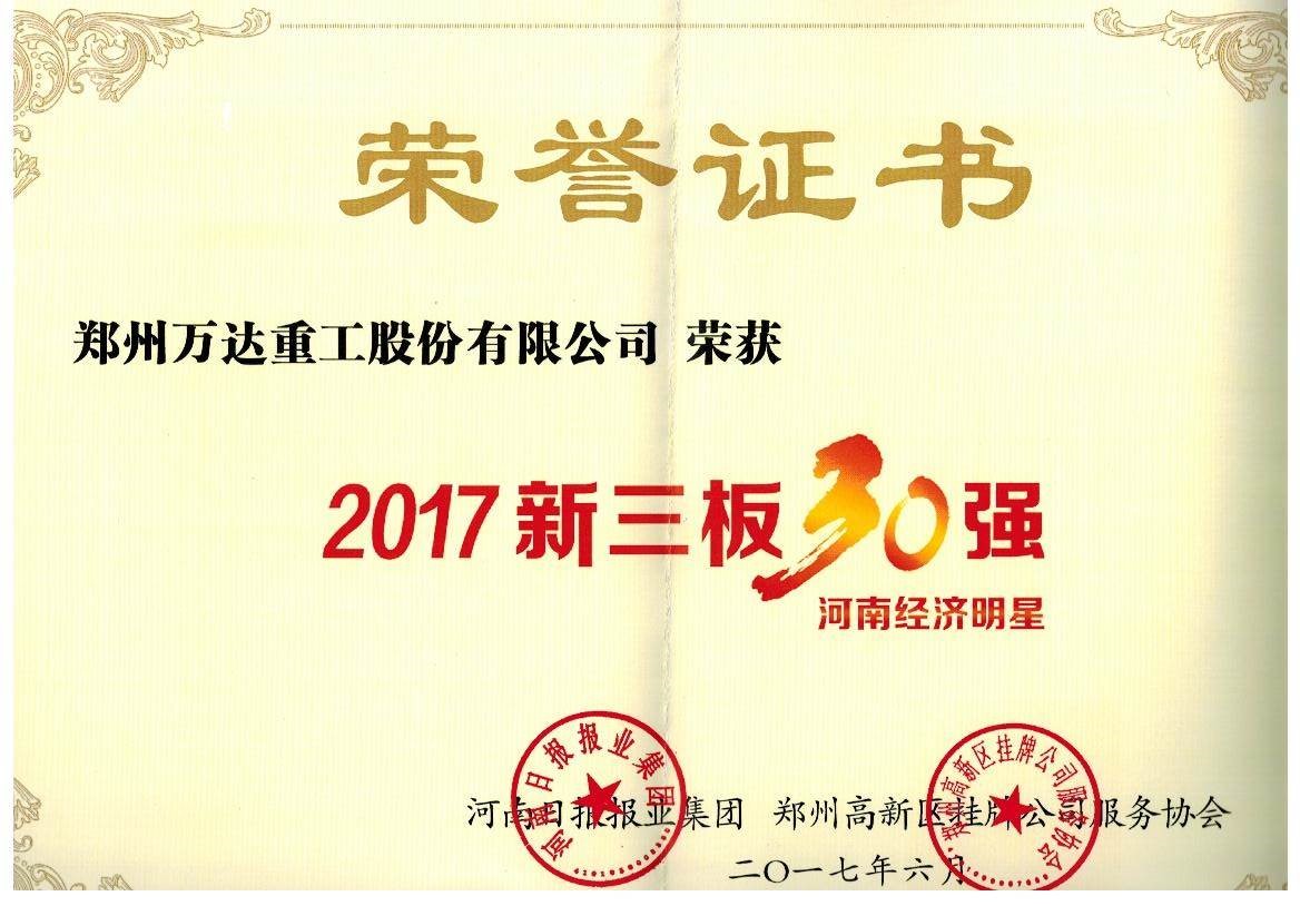 熱烈祝賀鄭州萬達重工股份有限公司榮獲河南新三板“TOP30強”最具投資價值獎并獲得 “2017河南新三板30強”榮譽稱號。