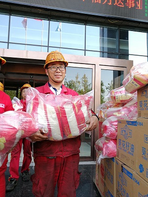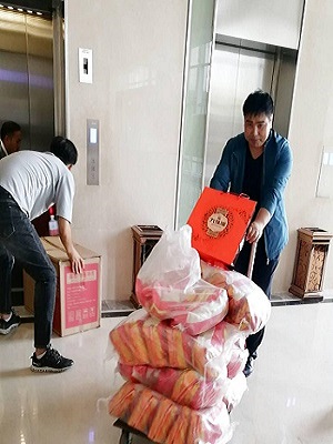 今天下午15:30,在萬達重工行政樓一樓大廳,人力行政中心為全體員工發(fā)放了載滿祝福的中秋禮品:每人一盒七星伴月月餅,祝福著萬達家人闔家團圓、幸福美滿;一桶多力葵花籽食用油、一袋大米,希望萬達家人家庭和諧、幸福美滿。以部門為單位進行領取,大家有的手提、有的肩扛、有的一起合力抬,萬達人個個臉上洋溢著喜悅之情,現(xiàn)場呈現(xiàn)出一片喜氣洋洋、熱鬧非凡的景象。