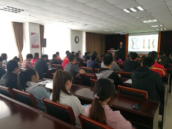 4月29日中午,針對公司生產(chǎn)崗位員工工作站立時間長等特點,王剛老師專門為員工講授了一套健身鍛煉方法,使大家隨時隨地都能夠進行練習(xí)鍛煉;4月30日,針對公司行政類崗位員工久坐、低頭伏案等特點,王剛老師精心為大家講解了頸椎病、腰肌勞損、不良睡坐姿等因素使員工產(chǎn)生身體疾病及如何預(yù)防和調(diào)理的健康知識講座,并通過現(xiàn)場教學(xué)指導(dǎo)等方式,為大家上了一堂生動的健康管理和綜合調(diào)理健康講座。通過面對面地交流及傳授,讓廣大員工更透徹地領(lǐng)會了相關(guān)疾病的預(yù)防和保健,以及健康的行為和生活方式。