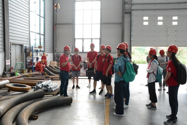 北大學(xué)生黨員“圓夢先鋒”鴻雁計劃一行先后深入堆焊生產(chǎn)車間進(jìn)行了參觀,薛總就公司復(fù)合堆焊設(shè)備和技術(shù)、管件生產(chǎn)設(shè)備和技術(shù)向?qū)W生們進(jìn)行了詳細(xì)講解。隨后,北大學(xué)生黨員參觀了萬達(dá)重工二樓黨員活動室、黨群活動紅色長廊、運(yùn)動健身室等一千多平方米的黨群基地。于副書記向參觀組一行簡要介紹了萬達(dá)重工黨建基地建設(shè)情況。