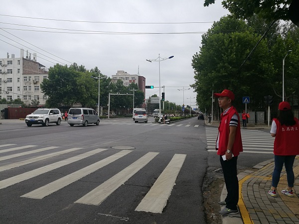 活動中,黨員志愿者和青年志愿者統(tǒng)一身著志愿者服裝,分別走上不同路口,手舉“文明交通志愿者”紅旗,嚴(yán)謹(jǐn)認(rèn)真地站在路口指揮交通,引導(dǎo)群眾走人行道、并熱心地為前來詢問路段的群眾指引方向,展現(xiàn)出萬達重工志愿者良好形象。