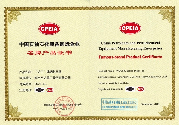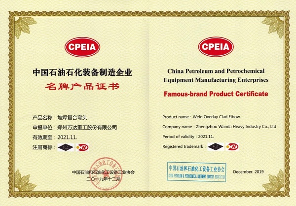 為更好落實“中國制造2025”的發(fā)展戰(zhàn)略,培育企業(yè)具有科技創(chuàng)新水平的名牌產品,根據(jù)《中國石油石化裝備制造服務行業(yè)名牌產品推薦辦法》規(guī)定,經過企業(yè)自愿申報、行業(yè)部門初審、專家評審等環(huán)節(jié),萬達重工 “益工”牌“堆焊復合彎頭”和“益工牌鋼制三通”等2類產品被中國石油和石油化工設備工業(yè)協(xié)會評定為中國石油石化裝備制造企業(yè)名牌產品并頒發(fā)證書。