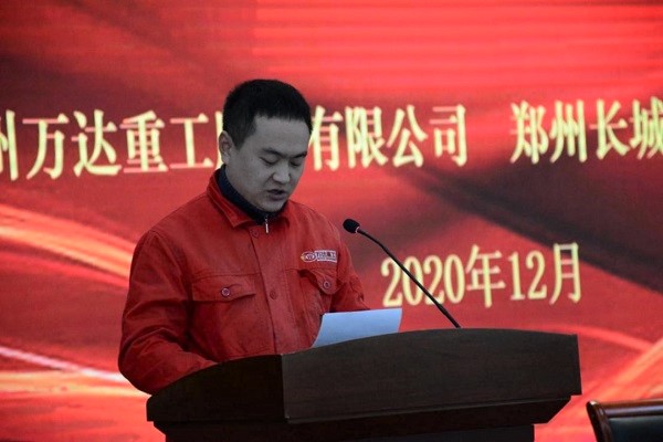 鄭州航空港區(qū)人社局趙杰處長,股份公司董事長、書記何清,鄭州長城科技中等專業(yè)學(xué)校校長司建峰,股份公司總經(jīng)理張付峰,長城科技中等專業(yè)學(xué)校副校長李珊珊等領(lǐng)導(dǎo)共同出席本次活動,萬達(dá)重工190名學(xué)員及導(dǎo)師一同到場參加。會議由股份公司監(jiān)事會主席、工會主席于江山主持。