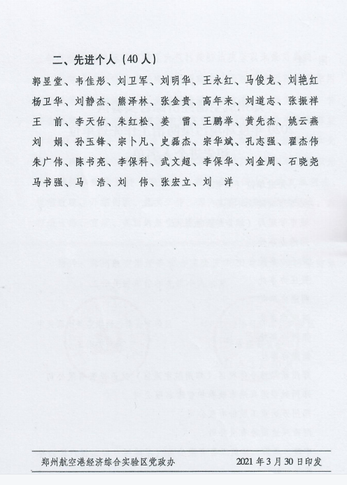根據(jù)中共鄭州航空港經(jīng)濟綜合實驗區(qū)工作委員會文件 鄭港工委[2021]11號文《中共鄭州航空港經(jīng)濟綜合實驗區(qū)工作委員會 鄭州航空港經(jīng)濟綜合實驗區(qū)管理委員會關(guān)于2020年度環(huán)境污染防治工作先進單位和先進個人的通報》,萬達重工榮獲2020年度環(huán)境污染防治工作先進單位榮譽稱號。