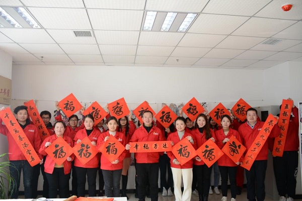 以寫春聯(lián)、書福字為主題的送溫暖活動,是萬達(dá)重工多年來一直堅(jiān)持的傳統(tǒng)活動,一副副福字不僅蘊(yùn)含了股份公司對全體員工的美好祝福,更寄托了大家對新的一年的美好期望。通過開展“喜迎新春 寫福送福”活動,既傳播了中國傳統(tǒng)文化,增添了節(jié)日氛圍,又拉近了股份公司與員工之間的距離,讓大家在感受中國傳統(tǒng)文化的同時(shí),折射出“平安、悅享、感恩、幸福”的企業(yè)關(guān)愛理念。最后,工會主席于江山、各工會委員同公司書法愛好者們進(jìn)行合影留念,此次活動所寫的福字將與發(fā)放的春節(jié)禮品一起全部送到所有萬達(dá)員工手中。