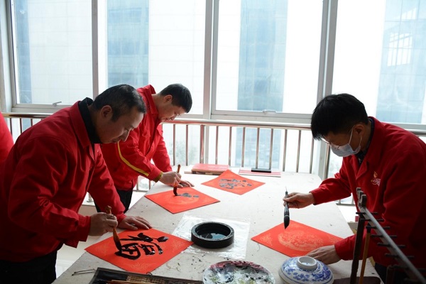 萬達(dá)重工開展“喜迎新春 寫福送?!被顒?