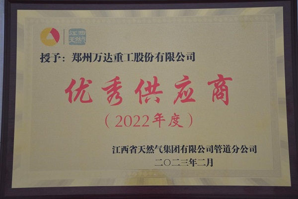 近日,鄭州萬達重工股份有限公司收到了江西省天然氣集團有限公司管道分公司頒發(fā)的2022年度“優(yōu)秀供應(yīng)商”榮譽獎牌,獲得該公司2022年度優(yōu)秀供應(yīng)商榮譽稱號。業(yè)主方對公司所承接彎管項目的產(chǎn)品質(zhì)量、交貨周期、售后服務(wù)等方面給予高度贊揚。