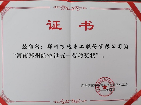 萬達(dá)重工榮獲“河南鄭州航空港五一勞動獎狀”及個人“第一屆河南鄭州航空港大工匠”榮譽
