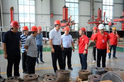 2021/08/11 1025 2021年8月10日下午,鄭州市副市長吳福民、市工信局副局長谷振風、航空港區(qū)管委會副主任魏學彬等領(lǐng)導蒞臨萬達重工開展萬人助萬企調(diào)研指導工作,鄭州萬達重工股份有限公司董事長、書記何清、總經(jīng)理張付峰及公司高管陪同參加。 吳福民副市長一行深入堆焊智能制造車間、彎制車間等生產(chǎn)車間進行參觀指導,實地了解公司的生產(chǎn)運營情況,股份公...