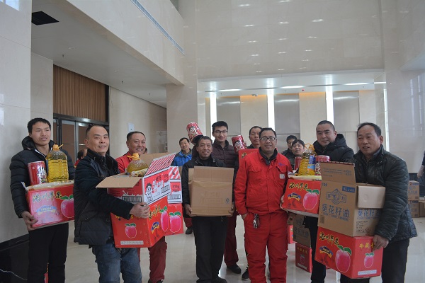 2018/02/09 718 新年到,福利多,萬達家人笑開懷。2018年2月9日下午1點,鄭州萬達重工股份有限公司在綜合辦公樓大廳向全體在職員工發(fā)放春節(jié)禮品及禮金。 春節(jié)福利承載著萬達對員工殷切的祝福,每人長粒香五常大米5KG、多力菜籽油5L、蘋果一箱、新年糖一盒和春節(jié)禮金,祝萬達人家庭富足、美滿順意;一盒糖是祝萬達家人生活甜如蜜,一箱蘋果更是祝萬...