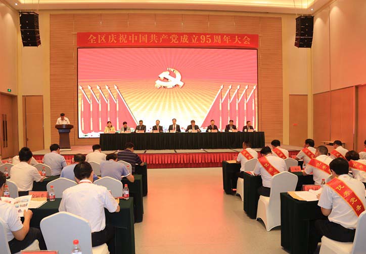 2016/07/06 747 2016年6月30日上午午,航空港實驗區(qū)隆重召開慶祝中國共產(chǎn)黨成立95周年大會,全區(qū)各區(qū)直委(部)、局辦、國企主要負(fù)責(zé)同志,各辦事處(社區(qū)服務(wù)中心)黨工委書記,各行政村(社區(qū))黨組織書記,企事業(yè)單位黨組織書記,受表彰的單位代表和優(yōu)秀共產(chǎn)黨員、優(yōu)秀黨務(wù)工作者約400人參加大會。大會由區(qū)黨工委副書記、管委會主任馬健主持,鄭...