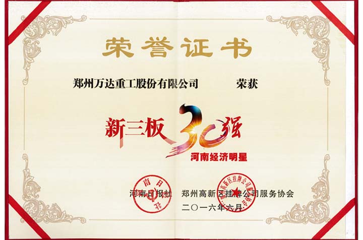 熱烈慶祝鄭州萬達(dá)重工股份有限公司上榜河南省新三板最具投資價值30強